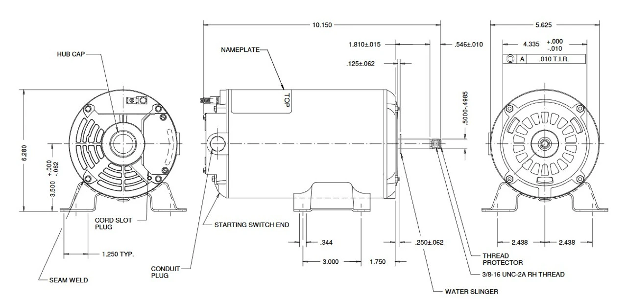 - NEMA 48Y Open Frame, 1/2″ diameter stainless steel shaft with 3/8″ dia. end thread