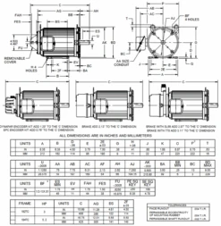 For use on conveyors, material handling equipment, cranes, and any application requiring frequent stops. Allows for manual release and brake torque adjustments. NEMA design B. Wiring diagram on motor name plate. TEFC = Totally-Enclosed Fan-Cooled. 4BRA34T