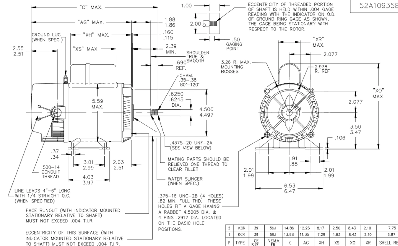 - NEMA 56J Frame, 5’8″ dia. by 1-5/8″ long threaded shaft, 60 Hz