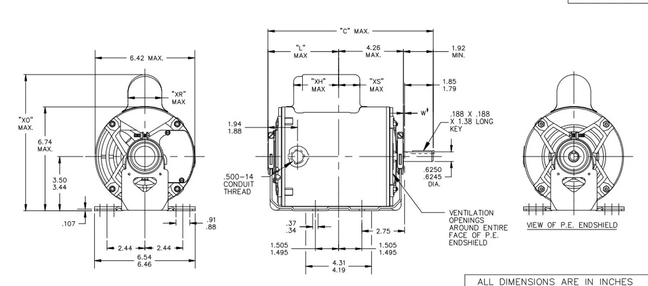 Blower motors are used to blow air inside of buildings. Shaft may be vertical or horizontal. ODP = Open Drip Proof.ย 5KC49PN6051X