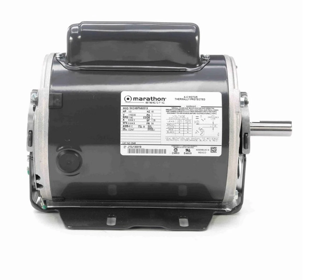 - 1/3 hp 1200 RPM, 8.6/4.3 amps, 115/230 Volts 60 Hz, Capacitor Start