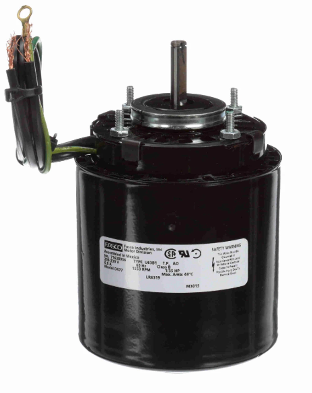- 1/35 hp 1550 RPM, .75 amps, 230 Volts 60hz.