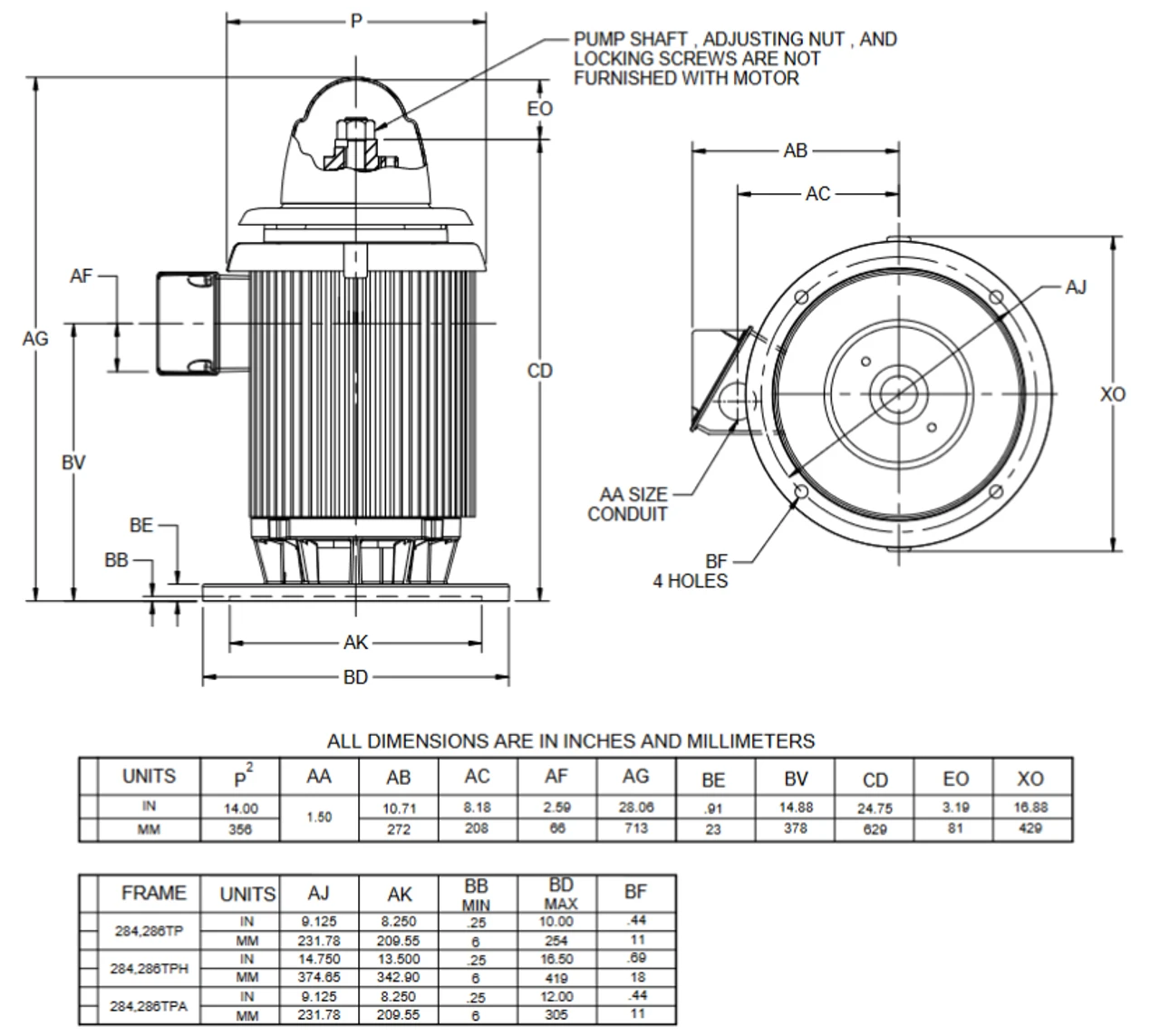 - NEMA 284TPA Frame, AUSI type, 12.0″ Dia. Base