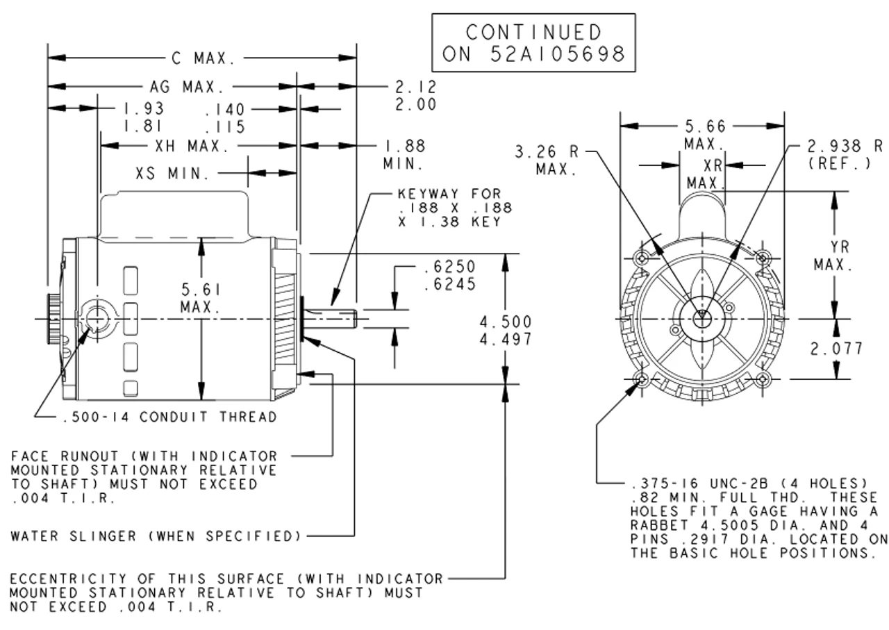 - NEMA 56C Frame, 5’8″ dia. by 1-5/8″ long keyed shaft, 60 Hz