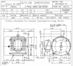 EP0034C TECO Westinghouse 3 Hp 1800 RPM 182TC Cast Iron 230/460V TEFC Severe Duty 3-Phase Motor