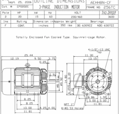 EP0206C TECO Westinghouse 20 Hp 1200 RPM 286TC Cast Iron 230/460V TEFC Severe Duty 3-Phase Motor
